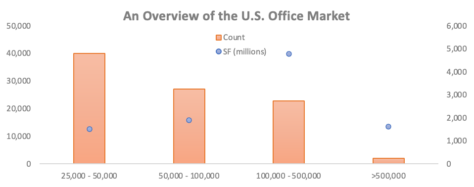 In the U.S., there are about 100,000 individual buildings accounting for roughly ~10 billion square feet of space. Half of the buildings were built more than 40 years ago. Our estimates suggest that users should need roughly 30% less space in the future, due the changes in workspace usage. Many people suggest that is dire for the market. I believe the opposite, that there is a shortage of the type of workspaces that people actually want.